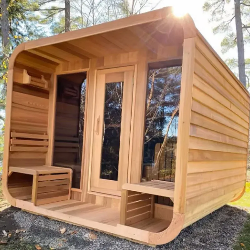 Kun luonnonmaisemat kohtaavat mukavat saunat, vapaa-ajan ja rentoutumisen uusi ulottuvuus avautuu. Tämä räätälöitävä ulkosaunahuone, jossa on kiuas, on rakennettu tieteelliseen suunnitteluun ja sen takaavat korkealaatuiset materiaalit. Se yhdistää taitavasti vedeneristyksen ja ruosteeneston käytännölliset ominaisuudet, läpinäkyvän ja kirkkaan lasirakenteen sekä tarkasti lämpötilaohjatun lämmitysjärjestelmän. Varustettu humanisoidulla L-muotoisella istuimella ja käytännöllisellä pöydällä, se luo sinulle ainutlaatuisen terveys- ja lepotilan ulkoalueille, kuten pihoille ja terasseille.
