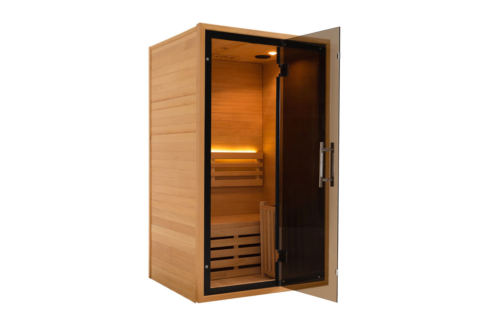 Tässä saunassa pohjana on luonnollinen massiivipuu, ytimenä älykäs tekniikka ja kohokohtana harmaa-musta lasiovi. Se luo uuden mittapuun kodin hyvinvoinnille kaikilta osin ulkonäöstä toimintaan. Nauti ammattitason saunahoidosta poistumatta kotoa ja aloita elämäntapa, jossa yhdistyvät terveys ja tyyli.