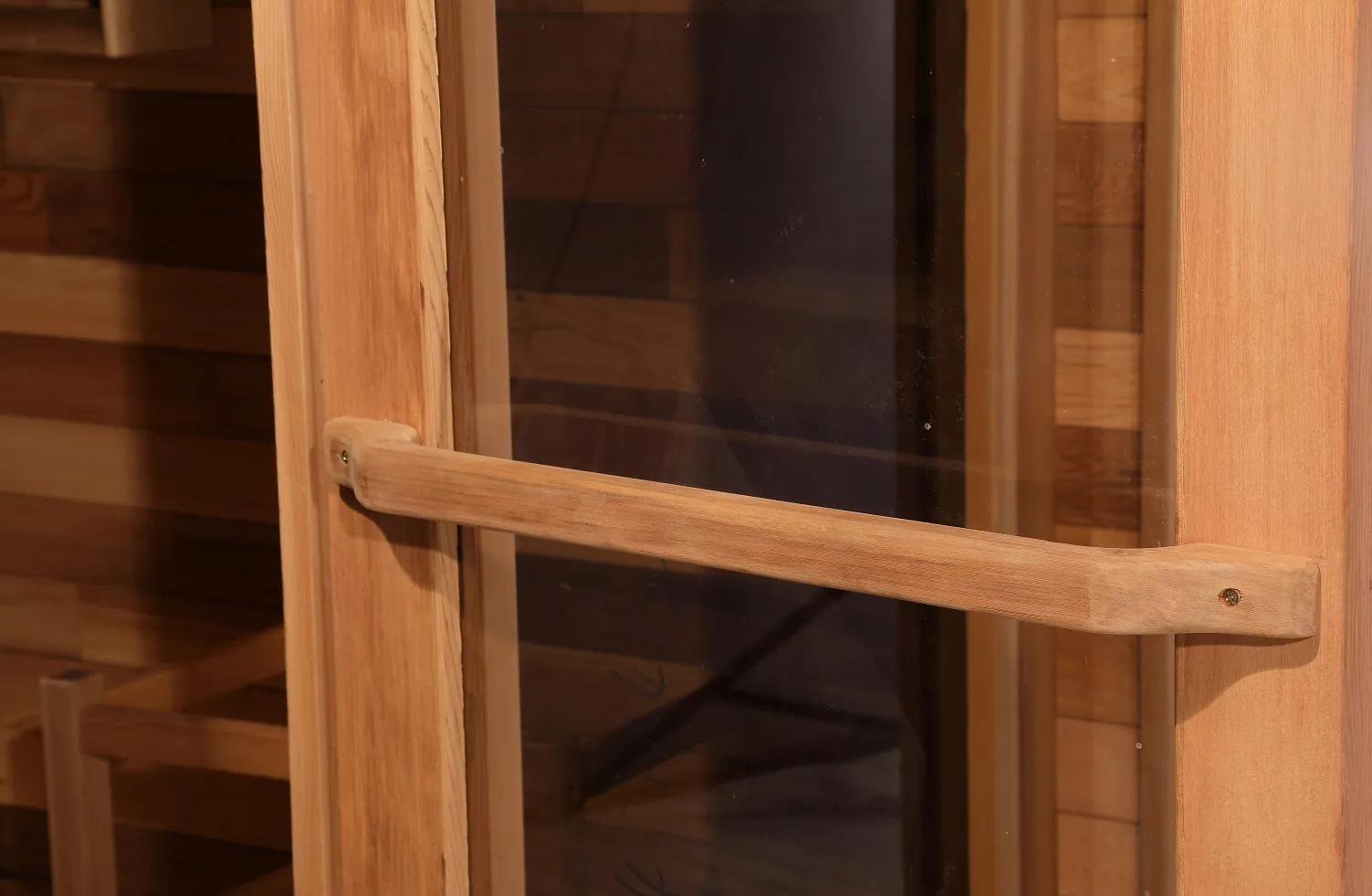 Valmistettu korkealaatuisesta luonnollisesta hemlock-puusta, ja siinä on herkkiä ja lämpimiä syitä sekä hienovarainen luonnollinen puun tuoksu, joka tuntuu mukavalta kosketuksessa. Materiaalille tehdään ammattimainen korroosionestokäsittely, ja sen tiheys on tasainen ja kestää muodonmuutoksia ja halkeilua. Olipa sitten alttiina suoralle auringonvalolle terassille tai kosteille olosuhteille sisäpihalla, se säilyttää vakaan koostumuksen pitkäaikaiseen käyttöön yhdistämällä luonnollisen estetiikan käytännölliseen kestävyyteen luodakseen seesteisen metsän inspiroiman tunnelman ulkosaunaistuntoihin.