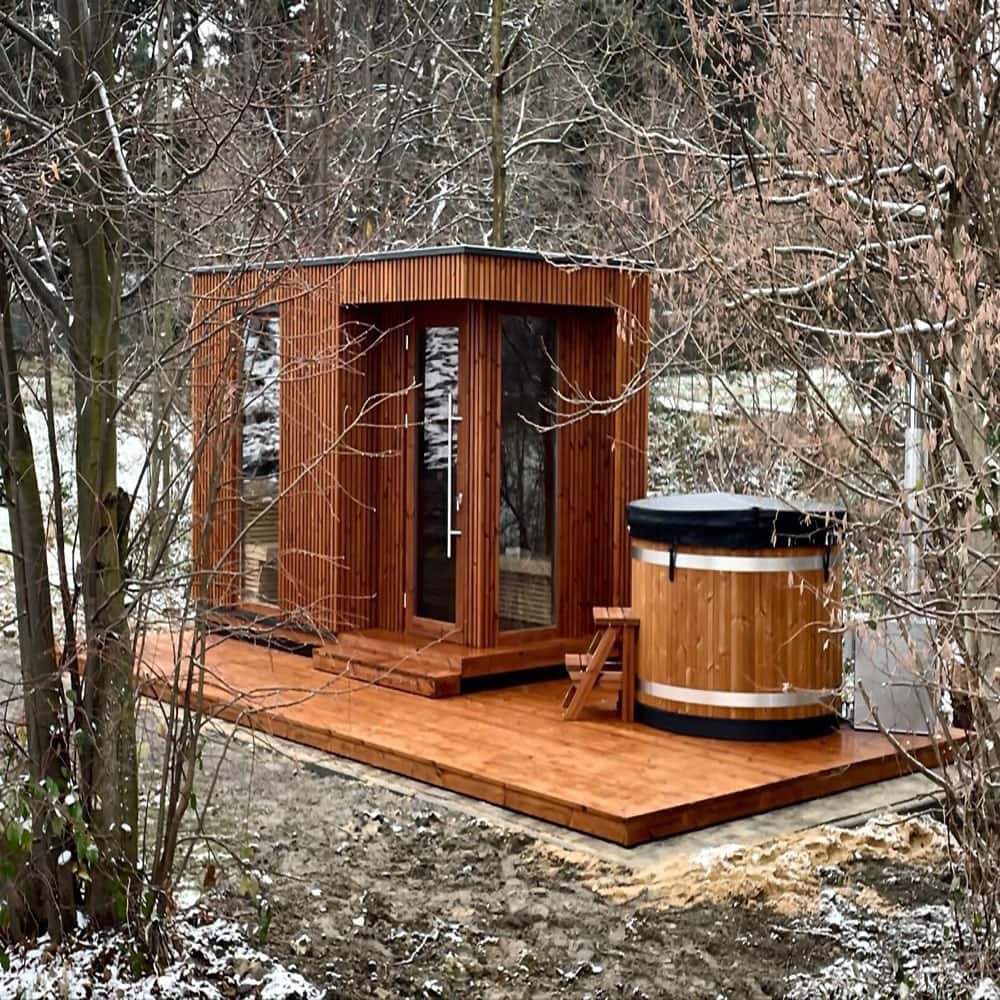 - Soveltuu ulkotiloihin, kuten pihoihin ja huviloihin, ihanteellinen päivittäiseen perheen rentoutumiseen ja vapaa-ajan elämyksiin pienissä sukulaisten ja ystävien tapaamisissa luoden yksityisen "sauna + SPA" -yhdistelmän vapaa-ajan alueen.