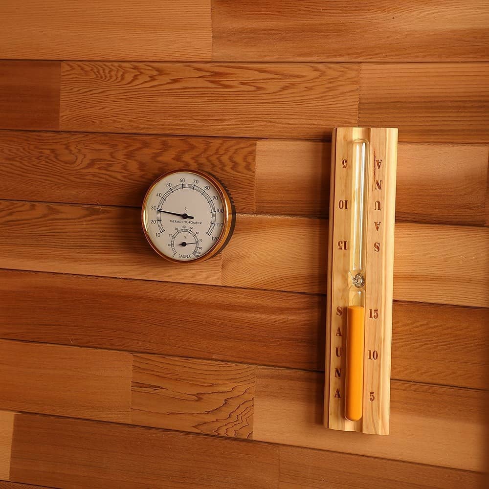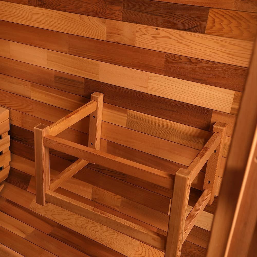 - Päämateriaali: Kaikkialla on käytetty korkealaatuista lämmönkestävää massiivipuuta (seinät, penkit ja runko ovat kaikki massiivipuuta), ammattimaisesti käsitelty kosteuden ja lämmönkestävyyden vuoksi sopeutuakseen korkean lämpötilan ja kosteuden saunaympäristöön.