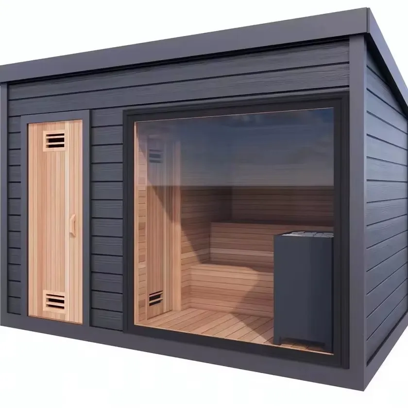 Tämä integroitu ulkosauna-poreallasyhdistelmä - massiivipuusta karkaistua lasia oleva sisäpiha/huvila on integroitu vapaa-ajan tila, joka on suunniteltu yksinomaan ulkotiloihin, kuten pihoihin ja huviloihin. Siinä yhdistyvät saunahuone ja poreallas massiivipuurunkorakenteessa, yhdistettynä läpinäkyviin lasikoteloihin. Samalla kun se säilyttää luonnollisen koostumuksen, se sulautuu saumattomasti ulkoympäristöön (vihreys, päällystetyt pinnat) luoden yksityisen rentoutumistilan perheille. Seuraavat kuvasarjat esittelevät sen integroitua suunnittelua, materiaaliyksityiskohtia, asennustehosteita ja käyttöskenaarioita useista eri näkökulmista ja esittelevät intuitiivisesti tuotteen edut.